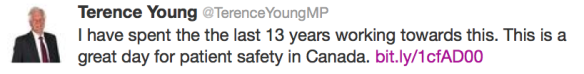 * BREAKING NEWS UPDATE, December 6, 2013:  Canadian government announces new patient safety legislation, known as the Protecting Canadians from Unsafe Drugs Act (Vanessa’s Law). Terence Young tweeted this message:
