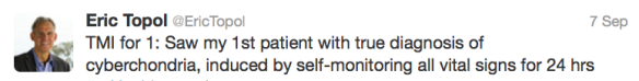 A MedCityNews article called Are We Headed Toward The Over-Quantified Self? examines when self-tracking crosses the line from enabling and empowering people to bombarding them with data, including this Tweet from California cardiologist and author of The Creative Destruction of Medicine, Dr. Eric Topol: