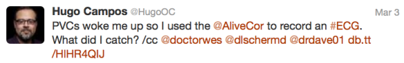 He‘s written previously about the occasional heart rhythms he’s captured with his AliveCor (Cardiologist and AliveCor founder Dr. David Albert has teasingly dubbed Hugo an “electrocardiographic exhibitionist”).